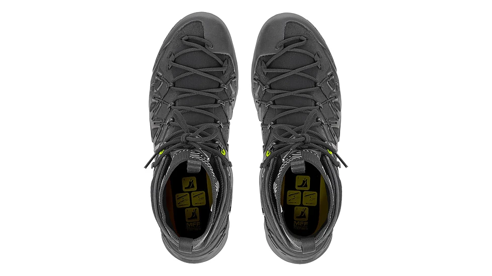 Its based on the smart and simple Salewa Switchfit system that allows you to quickly adapt the fit from hiking to climbing, by offering compression at the toes similar to a climbing shoe. Simply tighten the laces to pull your foot forward into the toebox. Once youve finished climbing, return the laces to the original position, for a wider toebox and more hiking comfort. To further enhance climbing precision, the Wildfire Edges insole also incorporates an Edging Plate below the side of the foot and big toe for additional, directional stiffness while the rest of the insole remains flexible and responsive to ensure good comfort and a natural rolling motion. The 11 mm drop is also ideal for fast mountain approaches or superior grip when traversing.